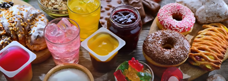 저희 집도 탄수화물 중독이라고 할 만큼 밥과 빵을 많이 먹는 편인데, 여기에 디저트까지 더하면 과당 섭취가 과도해질 수밖에 없습니다. 특히 당뇨병 환자가 "나는 밥을 줄이고 있어"라며 식후에 단 디저트를 먹는 건 생화학적으로 완전히 잘못된 행동입니다. 설탕은 포도당과 과당이 1:1로 결합된 슈크로스(sucrose)이고, 액상과당은 옥수수 시럽에서 추출한 것으로 과당 비율이 45~55%에 달합니다. 1960년대 미국에서 액상과당이 대량 생산되면서 탄산음료와 디저트에 무분별하게 사용되었고, 이것이 미국 비만 증가의 주요 원인 중 하나로 지목됩니다.