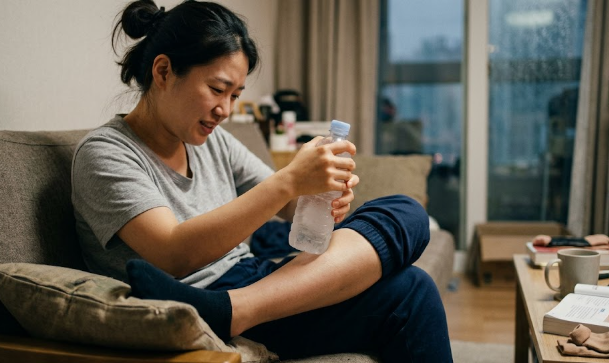 퇴근 후 가장 먼저 하는 일입니다. 골프공을 발바닥 아래에 두고 굴리며 근막을 이완시키거나, 얼린 생수병을 굴려 냉찜질을 병행하면 염증 완화에 큰 도움이 됩니다. 이때 500ml 생수병을 80%만 채워 얼리면 터지지 않고 굴리기 딱 좋습니다. 이런식으로 발을 풀어주면 온몸의 긴장이 풀리면서 편해짐을 느낍니다.