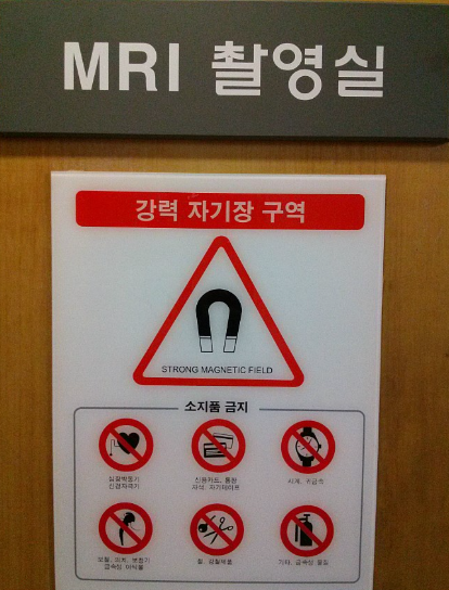 - 금속물 제거는 생명과 직결됩니다: MRI는 강력한 자석의 힘을 이용합니다. 몸 안에 심박조율기, 인공 와 관절 등 금속물이 있다면 반드시 의료진에게 미리 알려야 합니다.